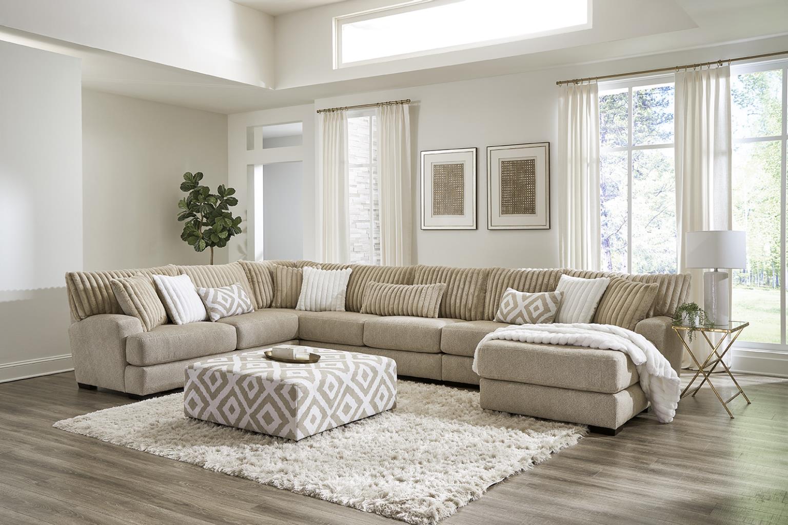 Two-piece champagne sectional sofa with ottoman, available at Best Mattress & More in Mobile, Alabama.