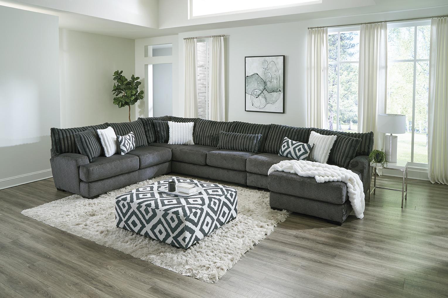 Four-piece light Mondo grey oversized sectional sofa with ottoman, available at Best Mattress & More in Mobile, Alabama